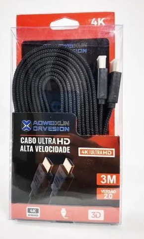 Cabo Hdmi 19 pinos, 2.0 Ethernet com 03 Metros de comprimento.
