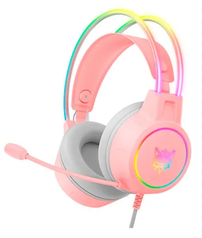 FONES DE OUVIDO ONIKUMA X15 PRO GAMER COM LUZES RGB ROSA